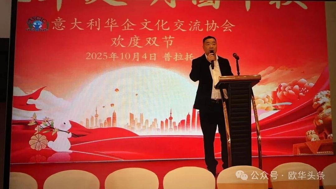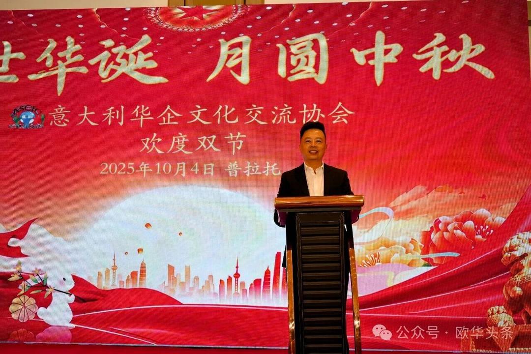 活动在热烈的掌声中拉开序幕。意大利华企文化交流协会会长曹隆科首先向全体会员及到场嘉宾致以诚挚的节日问候与美好祝愿。他表示,在这花好月圆、举国同庆的美好时刻,大家欢聚一堂,共庆双节,不仅是节日的喜悦,更是团结与凝聚的象征。